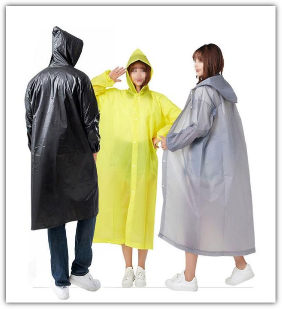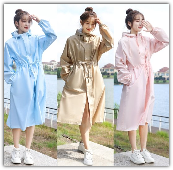 비옷 겸 우비는 주로 습한 날씨에서 몸을 건조하게 유지하도록 설계되었습니다. 폴리에스테르나 나일론과 같은 소재는 방수 코팅 처리를 하거나 방수 멤브레인을 덧대어 제작하는 경우가 많습니다. 이렇게 하면 빗물이 레인코트 표면에서 미끄러져 스며드는 것을 방지하고 쾌적하게 건조 상태를 유지할 수 있습니다.